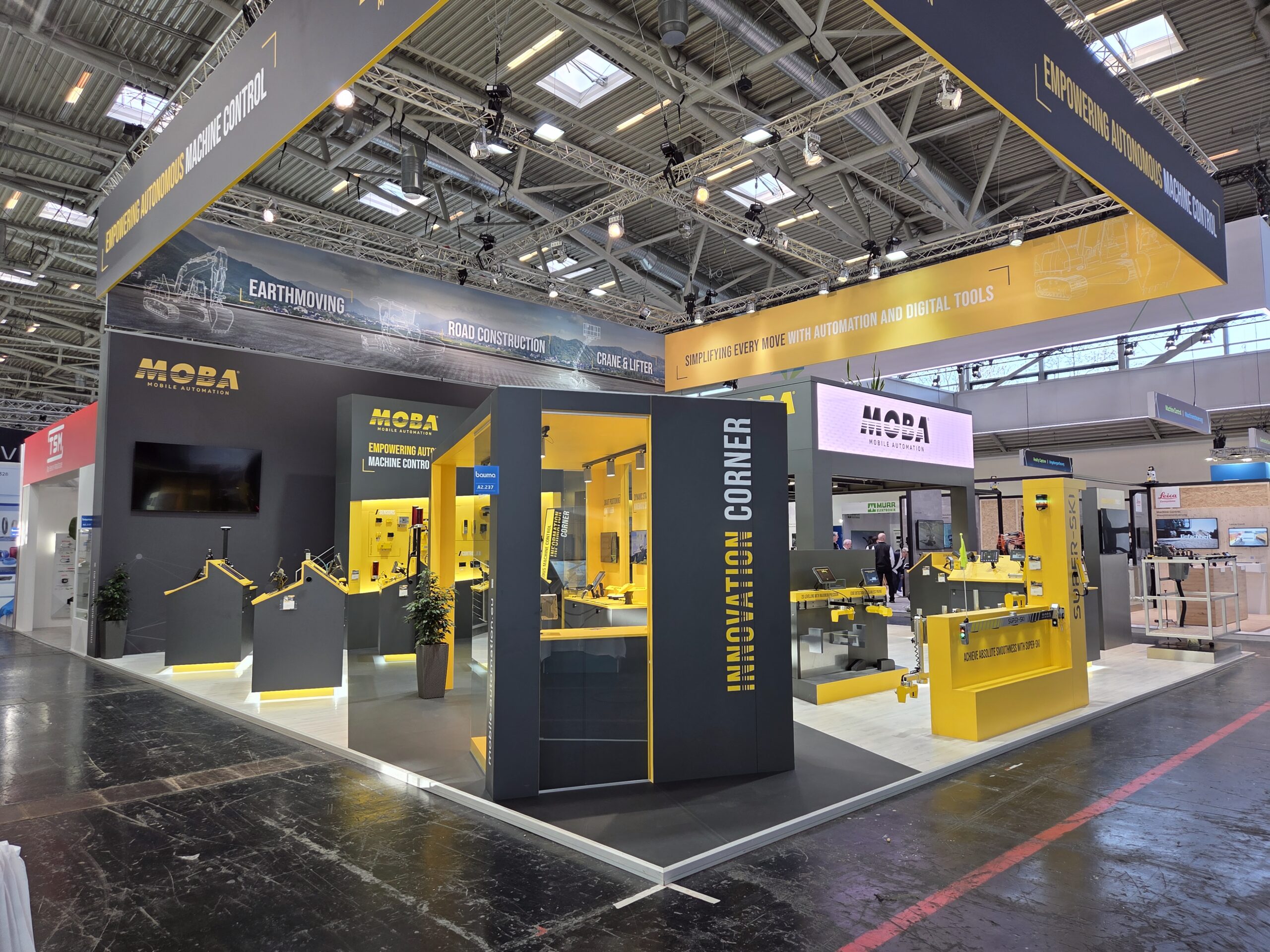 Wer auf der Bauma ausstellt, gestaltet die Zukunft der Branche mit. Auch MOBA Mobile Automation folgte diesem Anspruch und nutzte die internationale Leitmesse, um unter dem Motto „Empowering Autonomous Machine Control“ ihre neuesten Komponenten und Systeme für Straßenbau, Erdbewegung sowie Kran- und Bühnenanwendungen vorzustellen. Auf seinem gut besuchten Messestand bewies der Spezialist für mobile Automatisierung ein feines Gespür für die Herausforderungen der Branche und präsentierte ein breites Spektrum an Technologien, die der autonomen und vernetzten Baustelle der Zukunft weiter den Weg ebnen.
