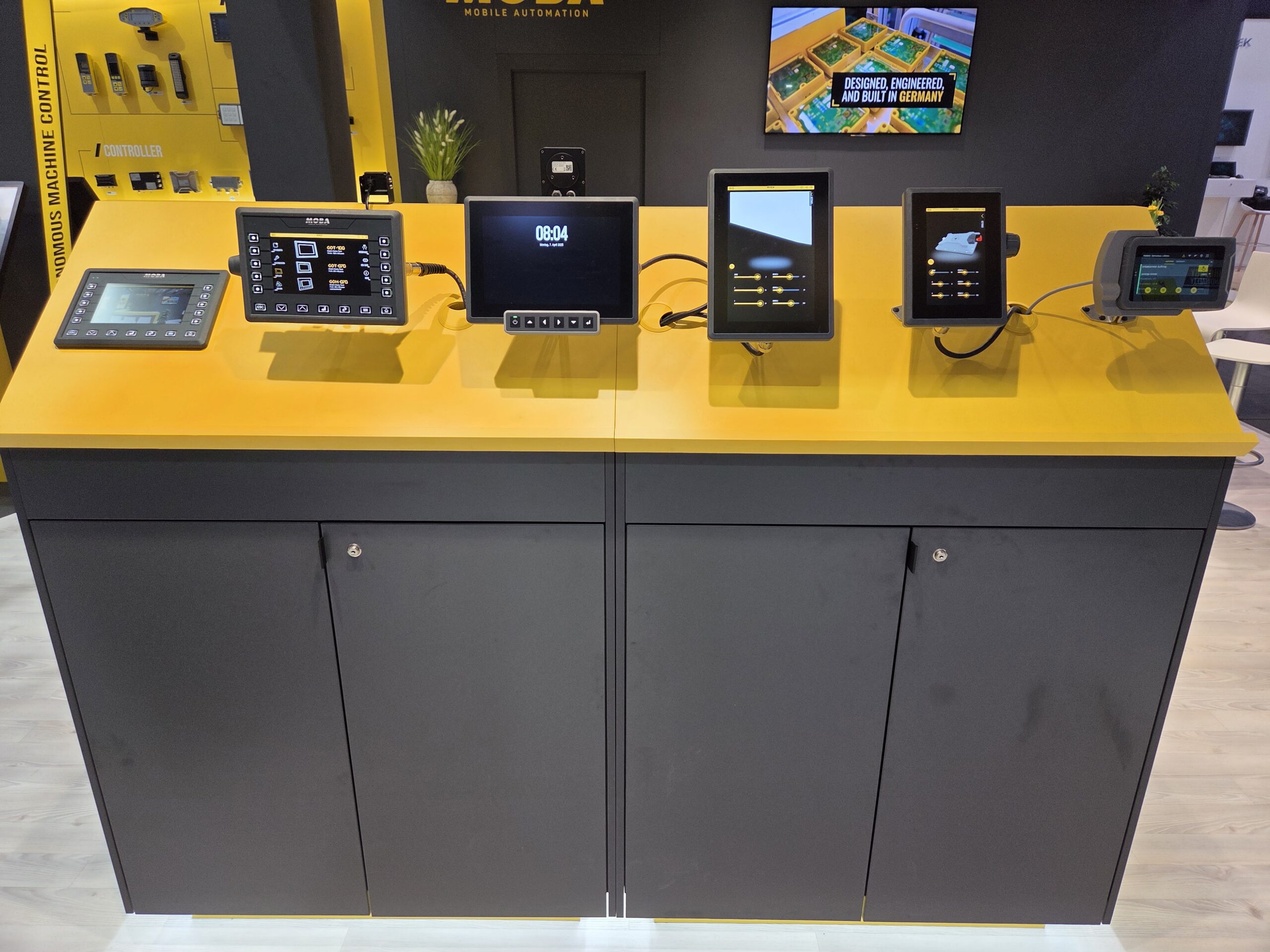 Überzeugen konnten außerdem die individualisierbaren Touch-Displays der GDx-Reihe. Nachdem sie auf der Bauma 2022 ihre Premiere feierten, gehen sie dieses Jahr in Serie. Speziell für OEMs entwickelt, lassen sich sowohl die Hardware als auch die Software der Displays flexibel an individuelle Anforderungen anpassen. Die Reihe – bestehend aus den drei Grundmodellen GDT-100, GDT-070 und GDH-070 – überzeugt hardwareseitig mit einer Vielzahl frei belegbarer Schnittstellen, modularen Anschlussmöglichkeiten sowie individuell konfigurierbaren Bedienelementen (Not-Aus-Taster, Tastaturen, Dreh-Encoder, etc.). Das hybride Modell GDH-070 punktet zusätzlich mit einem anpassbaren Frontfoliendesign.